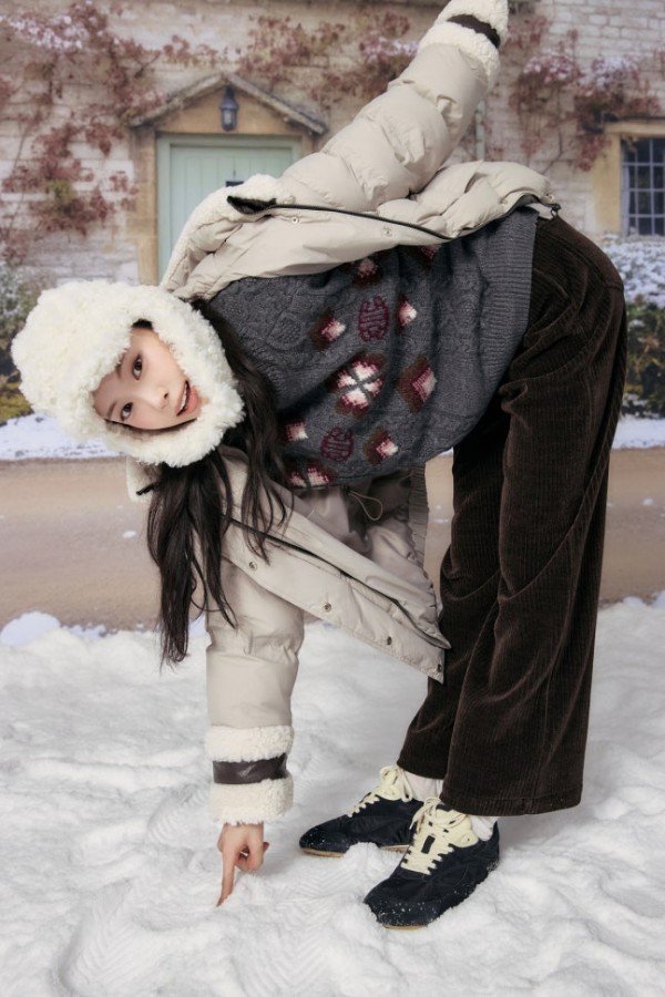 화보와 영상 속 손나은은 고급스러운 광택감이 도는 패딩 점퍼와 플라워 패턴 배색 니트 그리고 와이드핏의 코듀로이 팬츠를 매치해 포근한 겨울 코디를 선보이는가 하면, 페미닌하면서도 클래식한 무드의 핸드메이드 재킷과 그래픽 니트 베스트 그리고 베이직한 디자인의 하프 팬츠를 착용해 귀여운 스타일을 완벽 소화했다.