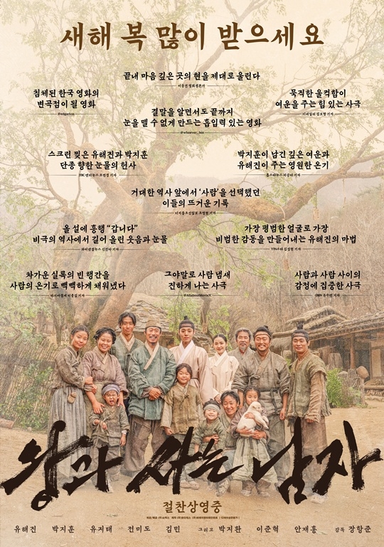 공개된 <왕과 사는 남자>의 리뷰 포스터는 환하게 미소 짓고 있는 광천골 촌장 엄흥도(유해진), 마을 사람들과 어울려 웃고 있는 어린 선왕 이홍위(박지훈)와 궁녀 매화(전미도), 흥도의 아들 태산(김민)의 모습이 모두 담겨 있어 마음에 따뜻한 울림을 더한다.