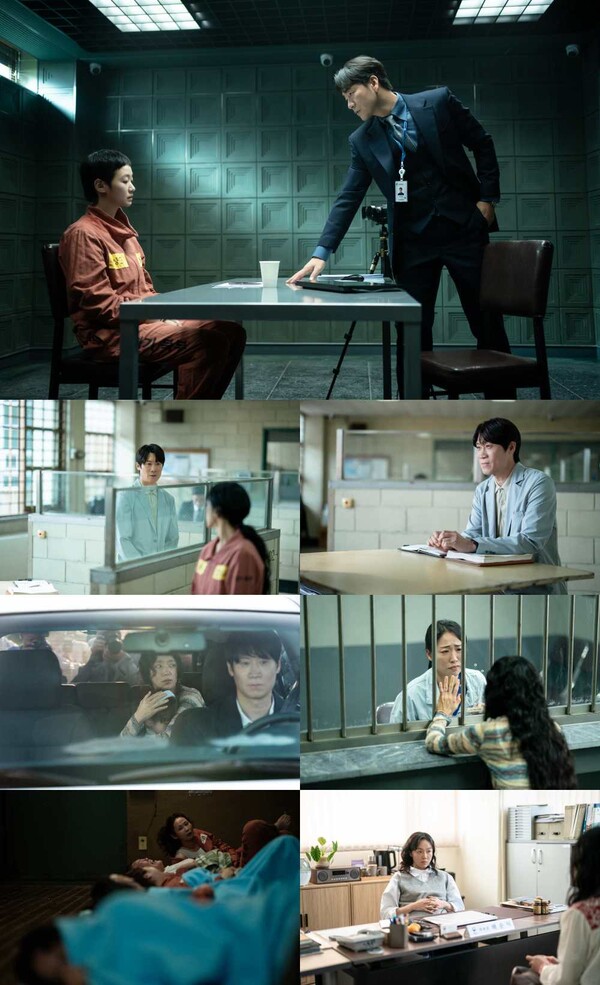 접견실에 있는 ‘윤수’의 변호사 ‘장정구’ 역의 진선규부터, 면회 온 ‘윤수’의 친구 ‘김문준’ 역의 이미도, ‘윤수’와 ‘모은’과 같은 교도소에 있는 재소자 ‘왈순’ 역의 김선영, 그리고 ‘윤수’의 보호관찰관 ‘배순덕’ 역의 이상희까지. ‘윤수’와 ‘모은’을 중심으로 얽히고설킨 인물들의 행보 또한 궁금증을 더하며, 극의 긴장감을 배가시킬 예정이다.