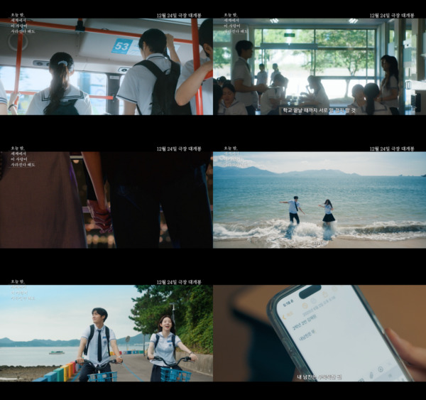 매일 기억을 잃지만 긍정적인 소녀 서윤과 매일 점점 더 그녀의 기억을 채워주고 싶어지는 재원이 보여 줄 싱그러우면서도 알콩달콩 귀여운 청춘들의 케미스트리는 올겨울 극장가에 훈훈한 설렘을 선사하며 관객들을 사로잡을 것이다. 올겨울 관객들이 반드시 기억해야 할 단 하나의 청춘 멜로 '오늘 밤, 세계에서 이 사랑이 사라진다 해도'는 12월 24일(수) 크리스마스 이브, 전국 극장에서 개봉한다.