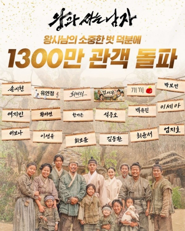 15일 오전 9시, 영화진흥위원회 통합전산망 집계에 따르면 ‘왕과 사는 남자’는 개봉 40일 만에 누적 관객 수 1,300만 명을 돌파했다. 이는 지난달 4일 개봉 이후 식지 않는 열기를 입증한 결과다.