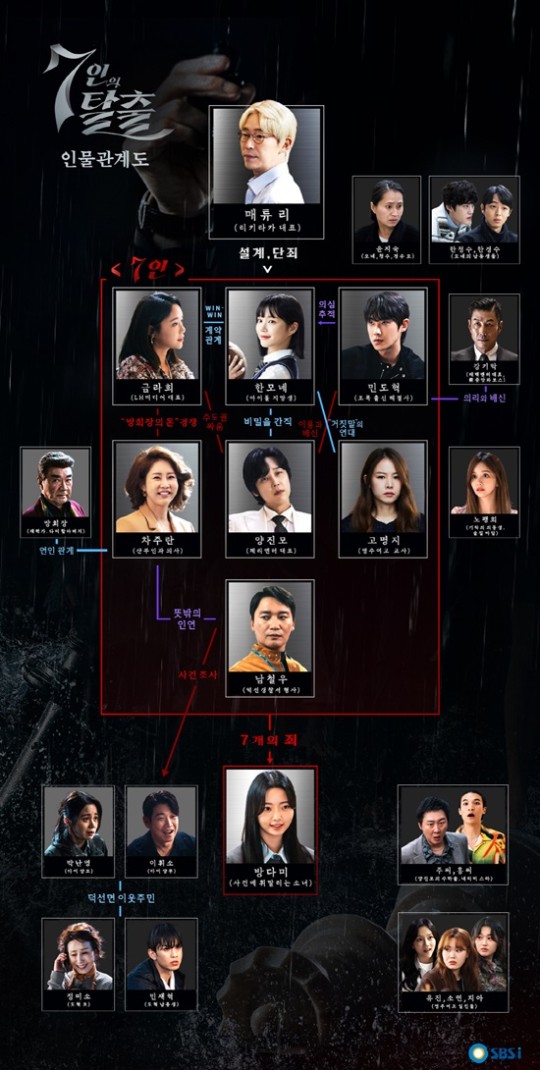 한 소녀의 비극에 깊숙이 얽혀있는 이들은 저마다 비밀을 숨기고 있다. 성공을 위해 씻을 수 없는 죄악을 저지른 악인들이 어떤 관계로 묶여 있는지, 또 이 연대가 오래 지속될 수 있을지 궁금증을 더하는 가운데 '7인의 탈출'은 9월 15일 밤 10시 첫 방송된다.
